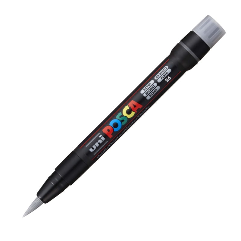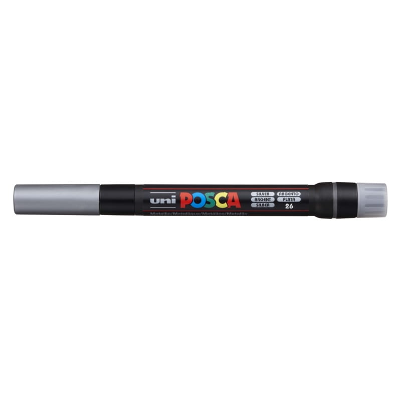 Marker artystyczny z farmą plakatową UNI Posca PCF-350 w kolorze srebrnym metalicznym.