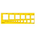 Szablon kreślarski do szybkiego i dokładnego rysowania kwadratów w różnych rozmiarach. Sprawdza się w rysunku technicznym, pracach szkolnych i projektowaniu analogowym, pomagając zachować powtarzalność kształtów oraz porządek na rysunku.