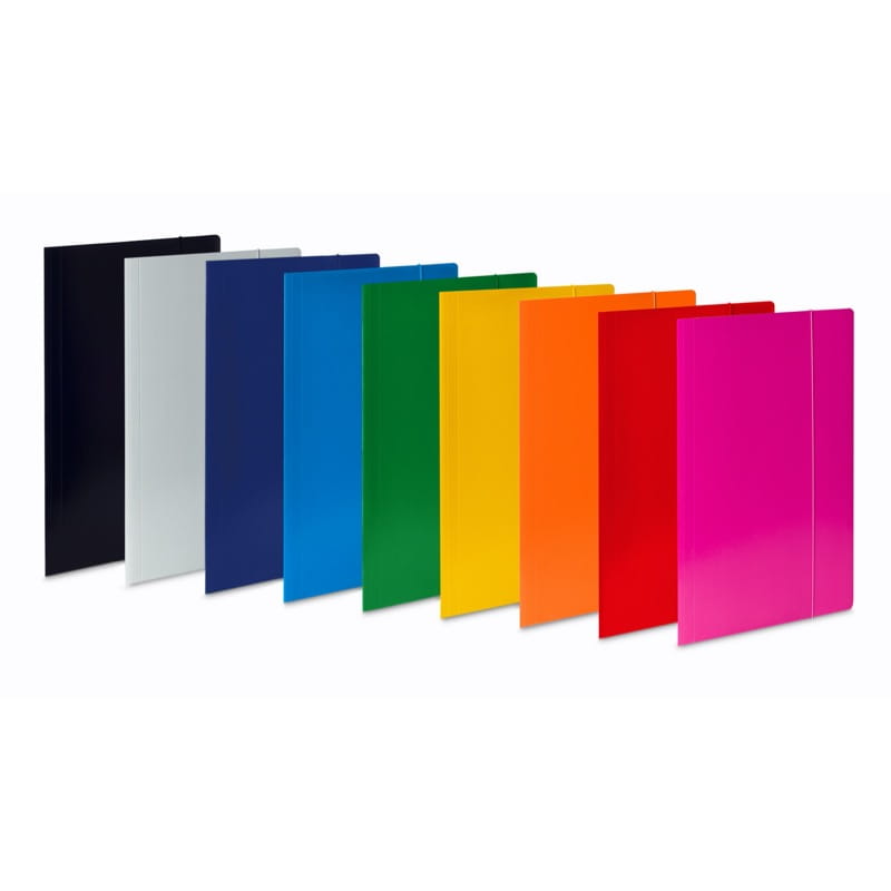 - Zamykana na gumkę w kolorze teczki.